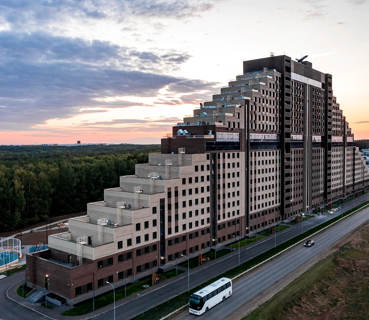 Малоэтажная застройка «Южного парка» создаёт гармоничное городское пространство. Близость к природному ландшафту и одновременное нахождение в черте города позволяет наслаждаться красотой природы и городской инфраструктурой.