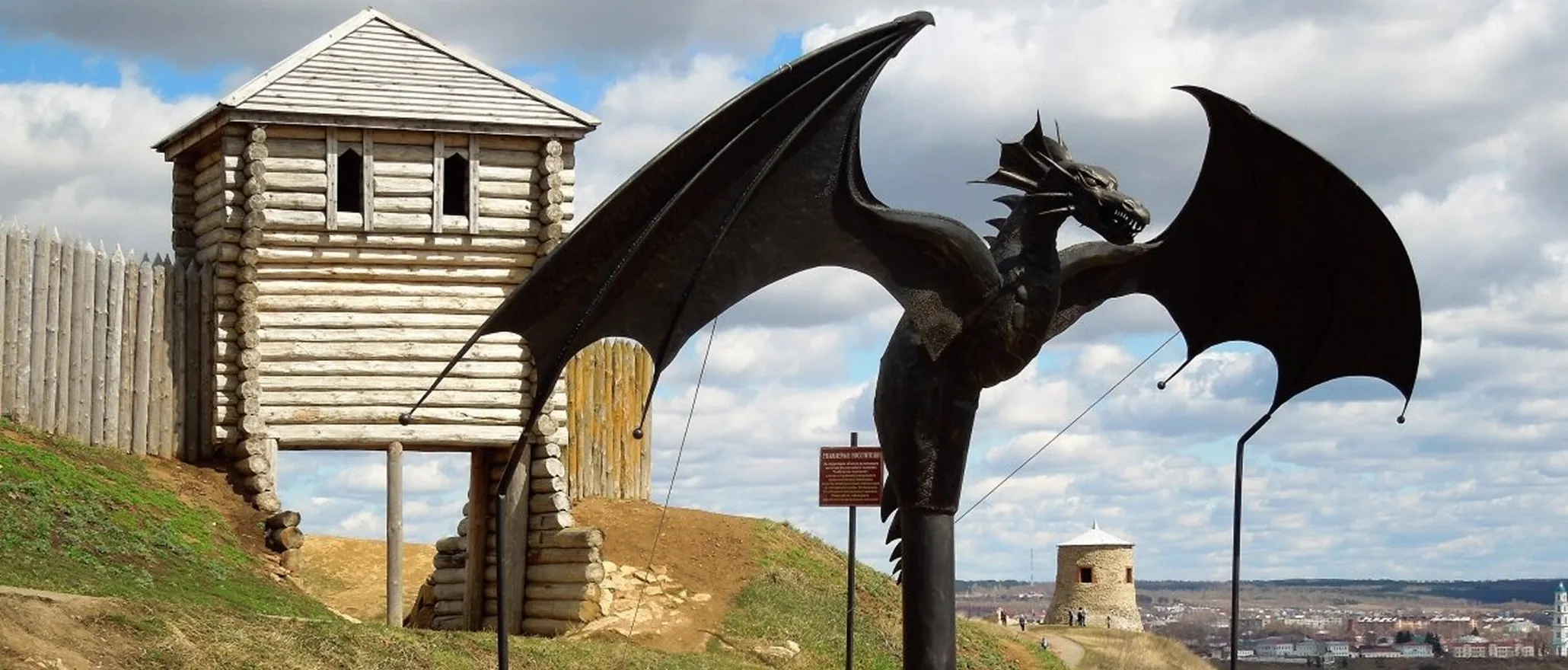 Здесь можно увидеть остатки крепостных стен и старинную башню, а также памятник основателю города — булгарскому эмиру. Кроме того, гости могут посетить ресторан с видом на реку и купить сувениры.